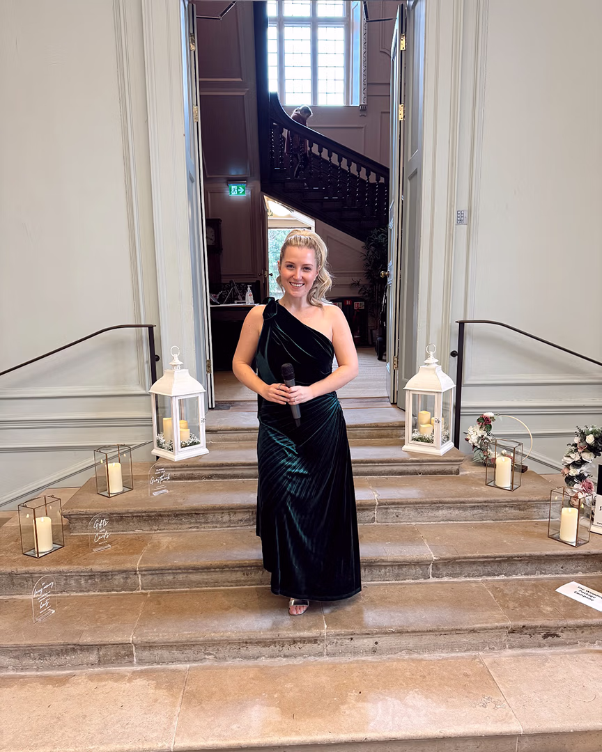 With over 15 years of professional performing experience — spanning West End theatres, UK tours and international shows — Georgie Rose brings a touch of sophistication and sparkle to every event. A versatile vocalist with a warm, expressive style, she tailors each performance to suit the moment, whether it’s an emotional aisle entrance, a relaxed drinks reception, or an upbeat set to kickstart the evening celebrations.